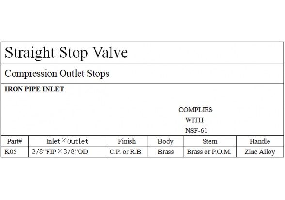 Brass Supply Stop Valve